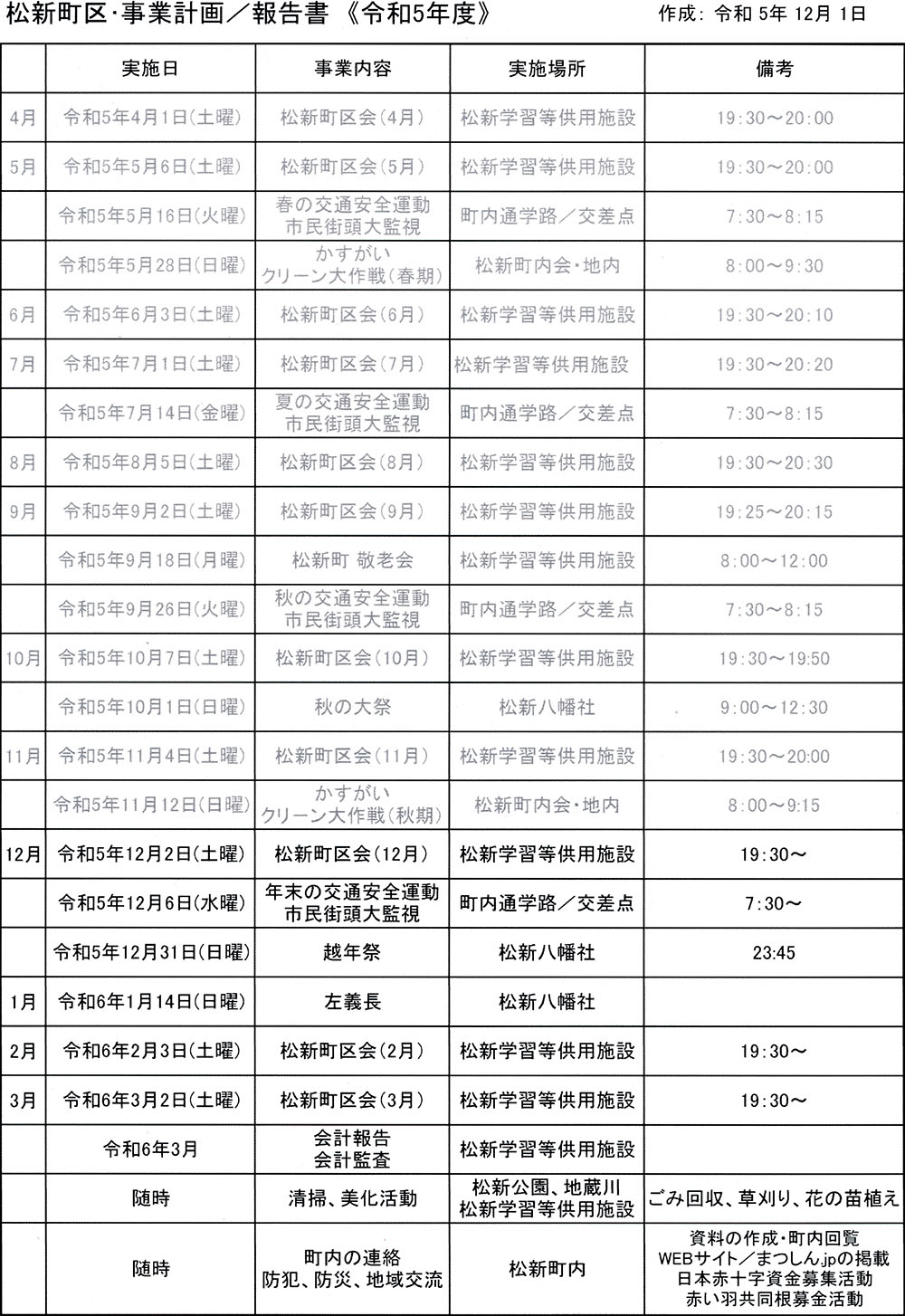 松新町区・11月区会議事録/令和5年11月4日(土)