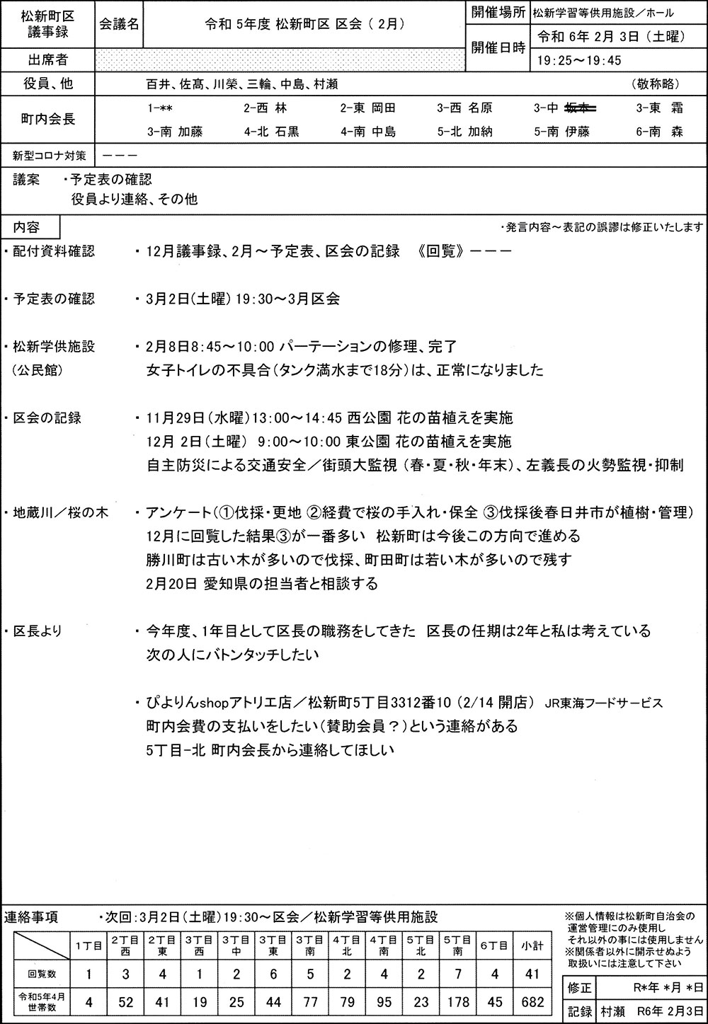 松新町区・2月区会議事録/令和6年2月3日(土)