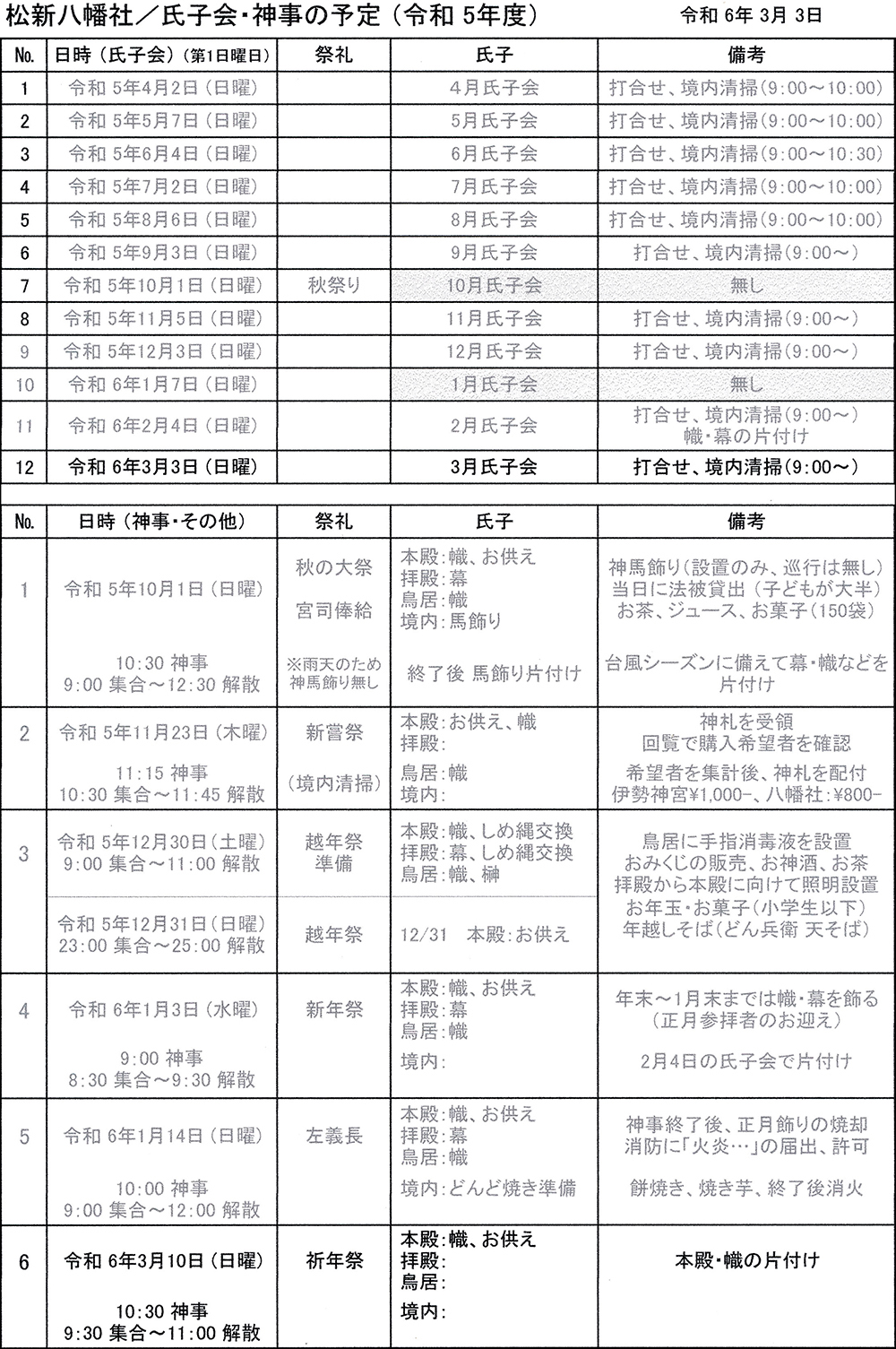 令和5年度 区会 氏子会 議題・予定表
