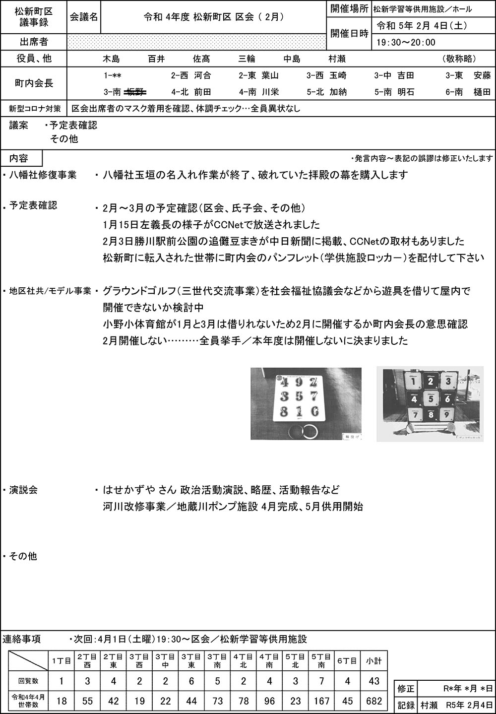 松新町区・2月区会議事録/令和5年2月4日(土)
