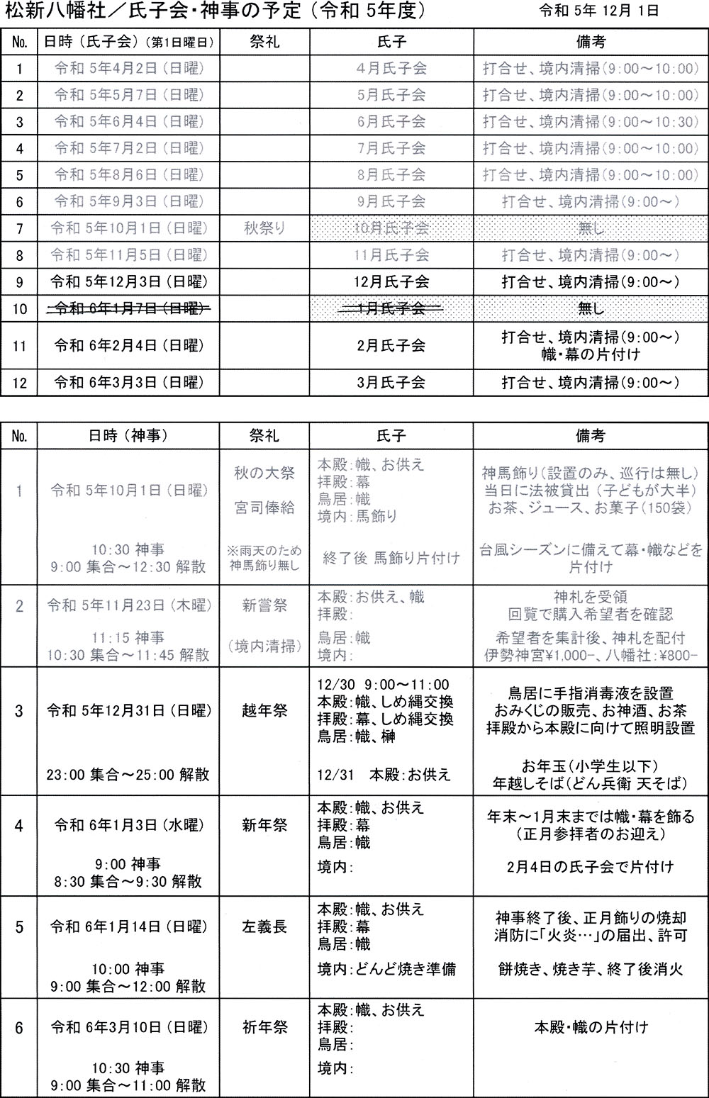 令和5年度 区会 氏子会 議題・予定表